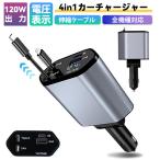 5位: シガーソケット カーチャージャー 車 車載 車用 充電器 電圧計 伸縮 巻き取り ケーブル 付き 120W Type-C Lightning USB PD20W 急速 QC3.0 高速 充電 iPhone 16